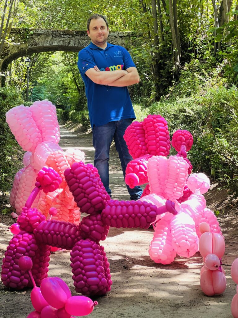 Nel 2014, questo amore per i palloncini lo portò a entrare a far parte di 𝗙𝘂𝗻𝗻𝘆 𝗕𝗼𝘅 𝗞𝗳𝘁, il distributore ungherese ufficiale di 𝗚𝗲𝗺𝗮𝗿 𝗕𝗮𝗹𝗹𝗼𝗼𝗻𝘀. Fu l’inizio di un viaggio incredibile che lo vide realizzare spettacolari strutture di palloncini in tutta l’Ungheria: archi giganti, sculture scenografiche, mondi interamente fatti d’aria e colore. Ogni creazione era un’𝗼𝗽𝗲𝗿𝗮 𝗱’𝗮𝗿𝘁𝗲 temporanea, capace di incantare chiunque la guardasse.